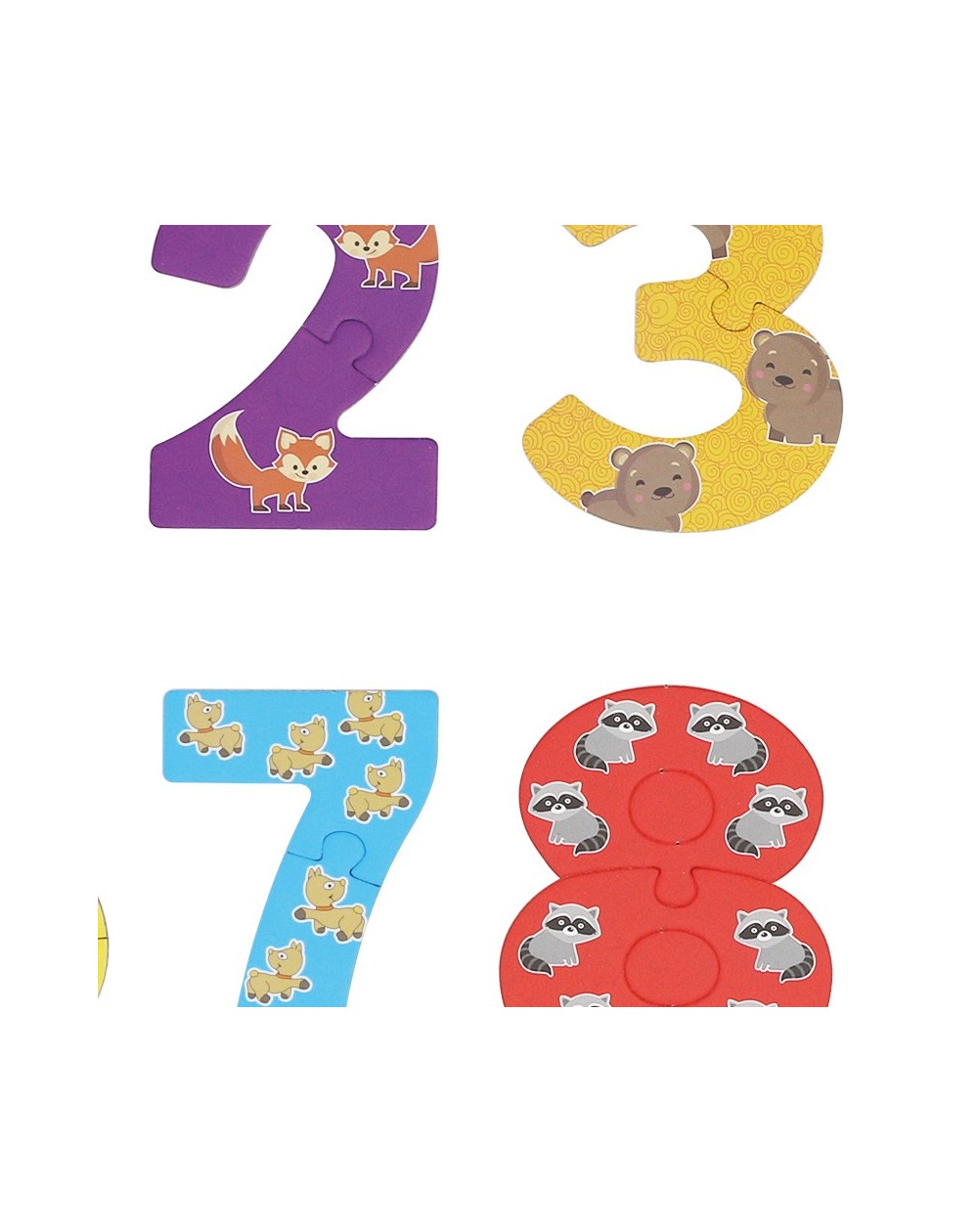 Conte os animaizinhos desenhados nas peças para aprender os números.