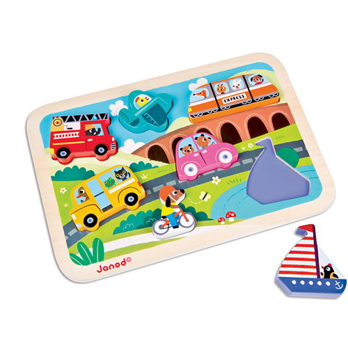 Puzzle de madeira alta qualidade sobre o tema dos veículos.