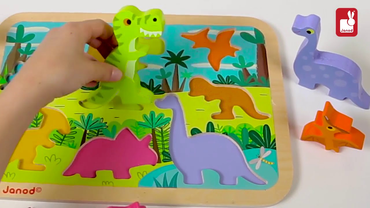Seu filho vai se divertir colocando os dinossauros no lugar certo e brincando com as peças que se destacam como figuras reais.