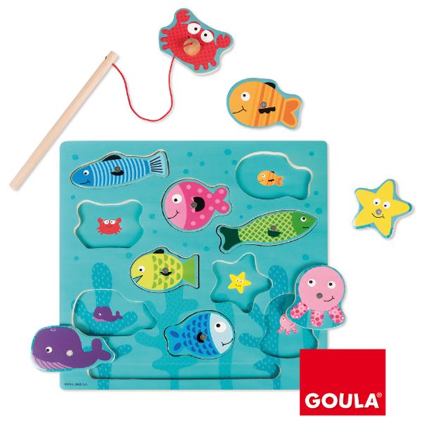 O Puzzle Animais Marinhos Magnéticos 28x28cm de madeira da Goula. Pescar os diferentes animais do mar com uma vara magnética. Combine as peças pela forma e pelo desenho, pois, dentro do puzzle, encontrará o mesmo animal desenhado. Desenvolver a capacidade de atenção e precisão. Favorece a precisão dos movimentos e a coordenação olho / mão. Desenhos com cores alegres e engraçadas. I Idade recomendada (mín.): 2 ano(s) Reciclável: Sim Material: Madeira Magnético: Sim I Não adequado para crianças de 3 anos