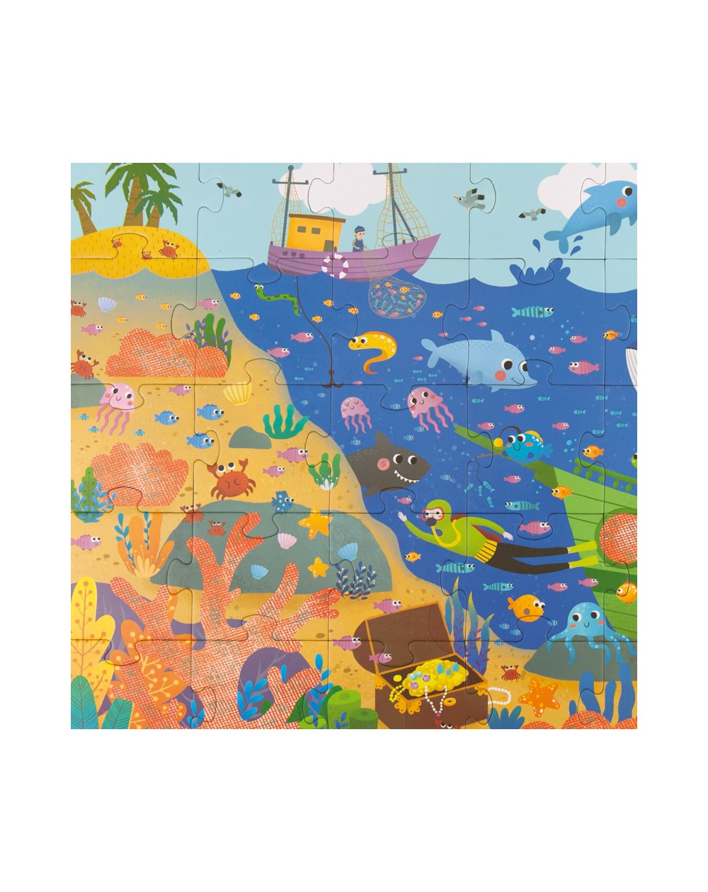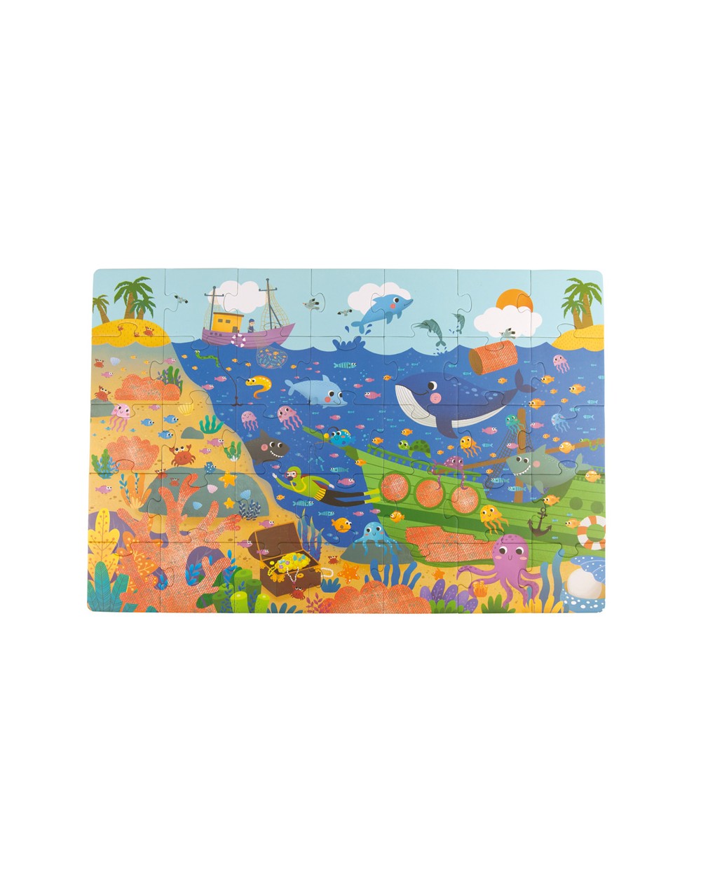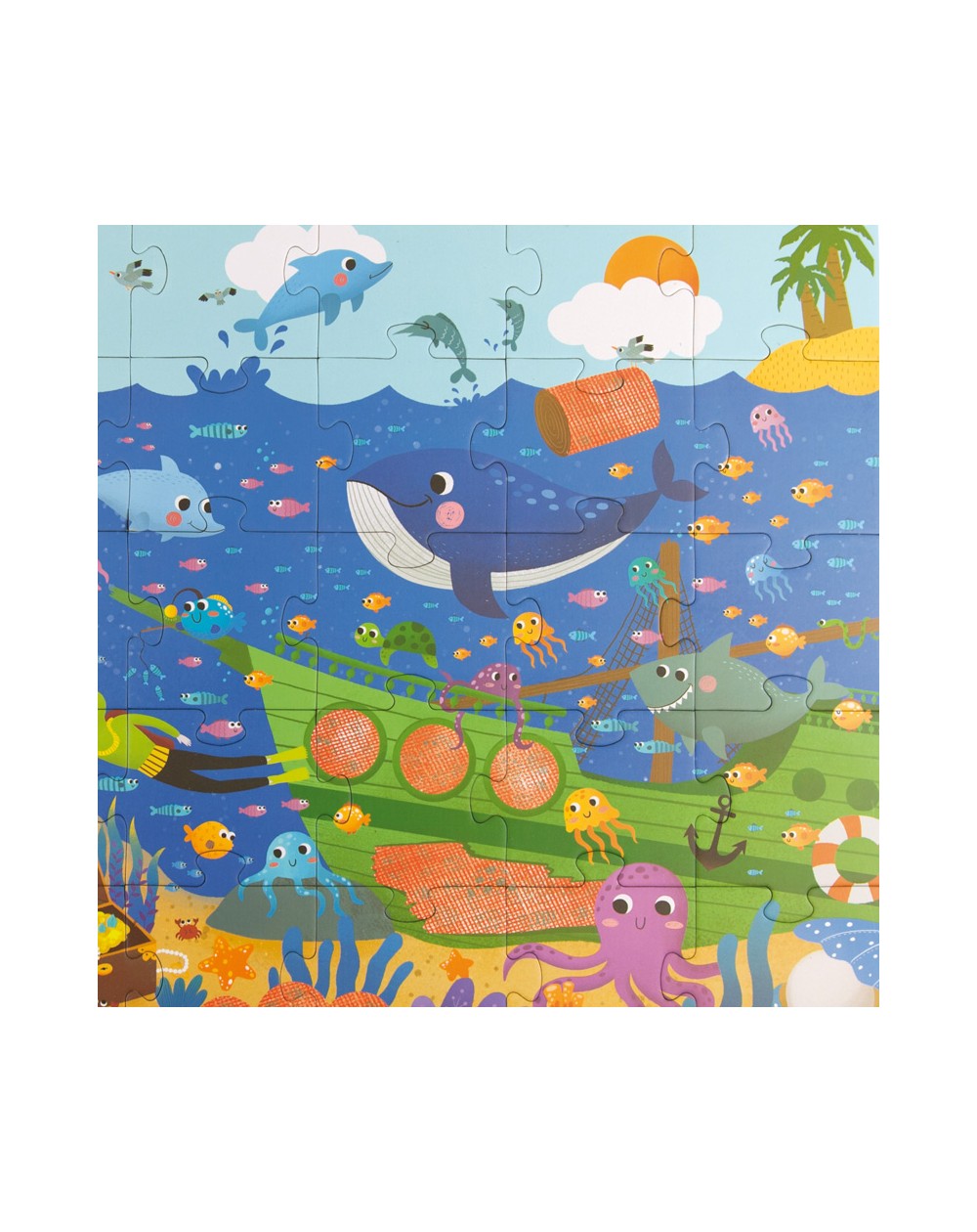 Reconstrua o puzzle de 35 peças e descubra todos os segredos do oceano, escondidos na água usando as pesquisas  subaquáticas com lentes especiais!