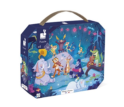 Uma viagem musical mágica com este magnífico puzzle de cartão de 36 peças em cores festivas e muitos detalhes.