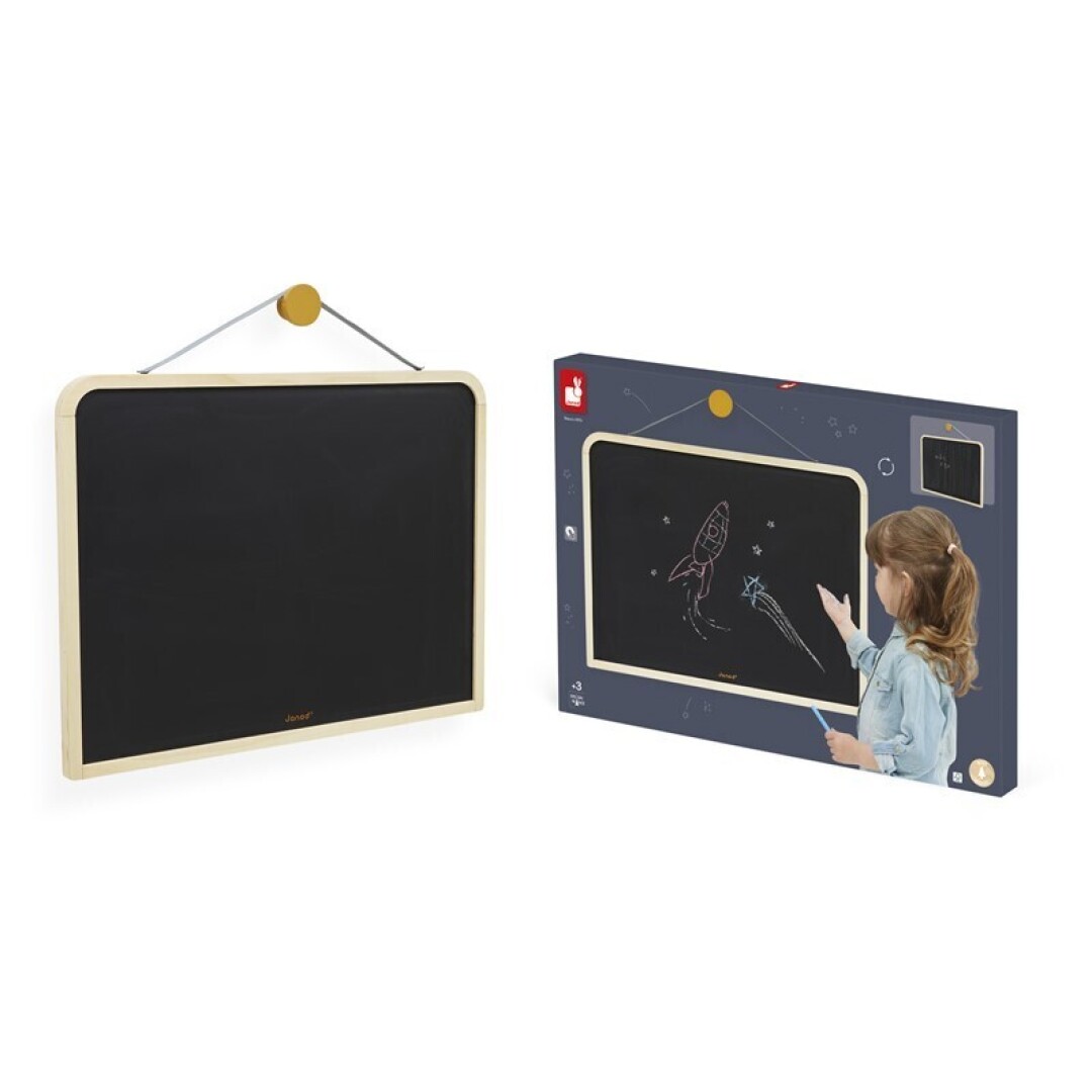 Deixe seu filho desenhar o quanto quiser neste grande quadro-negro de dupla face.
