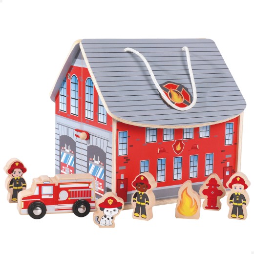 Saiba mais sobre o comércio de bombeiros com esta estação de bombeiros portátil WOOMAX. Jogue, salve e transporte para qualquer lugar! Inclui 8 peças com impressão frente e verso: 3 bombeiros, 1 cachorrinho, 1 carro de bombeiros, 1 figura que simula incêndio, 1 hidrante e 1 posto de bombeiros Transporte: todas as estatuetas de madeira podem ser armazenadas dentro do corpo de bombeiros e facilmente transportadas com a alça Valores: desenvolve a imaginação, a coordenação motora fina, a coordenação motora fina e o conhecimento da profissão de bombeiro Idade: brinquedo recomendado a partir dos 3 anos