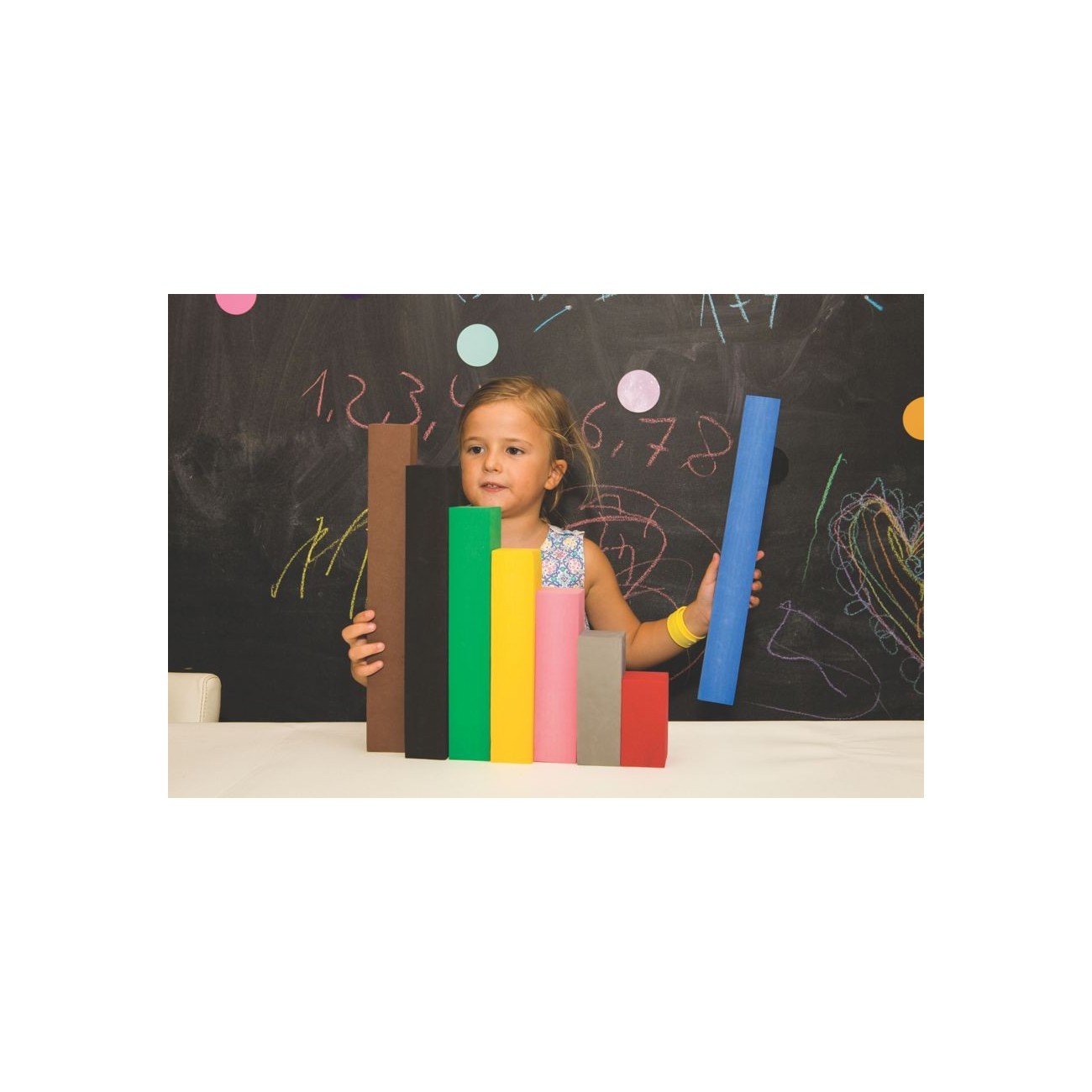 Seu tamanho e cores facilitam a demonstração aos alunos e tornam seu uso e manipulação divertidos.