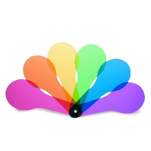 Raquetes transparentes de 6" em 6 cores com 3 texturas demonstram os princípios da mistura de cores.