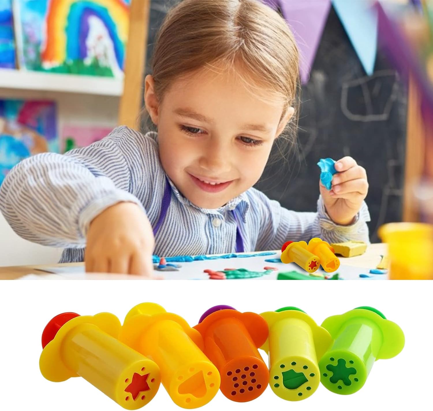 Brinquedo de plasticina perfeito: o nosso brinquedo de plasticina é um conjunto perfeito, vem em 5 padrões diferentes, as cores são aleatórias e a argila não está incluída, as crianças vão adorar Aplicação: os nossos brinquedos de plasticina são adequados para crianças de 3 anos, seguros e saudáveis, não tóxicos e inofensivos e amigáveis às crianças.