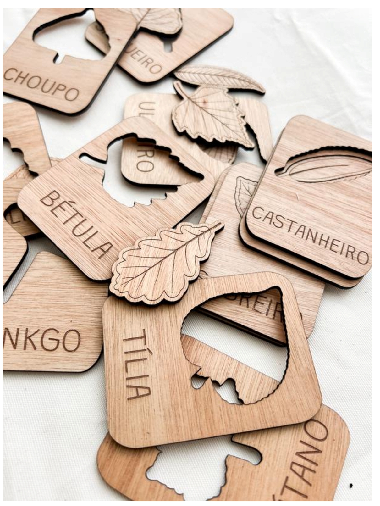Conjunto de 12 mini-puzzles de folhas deárvores comuns em Portugal.