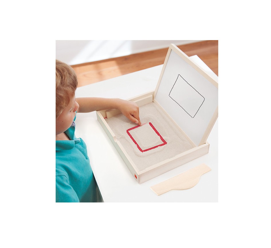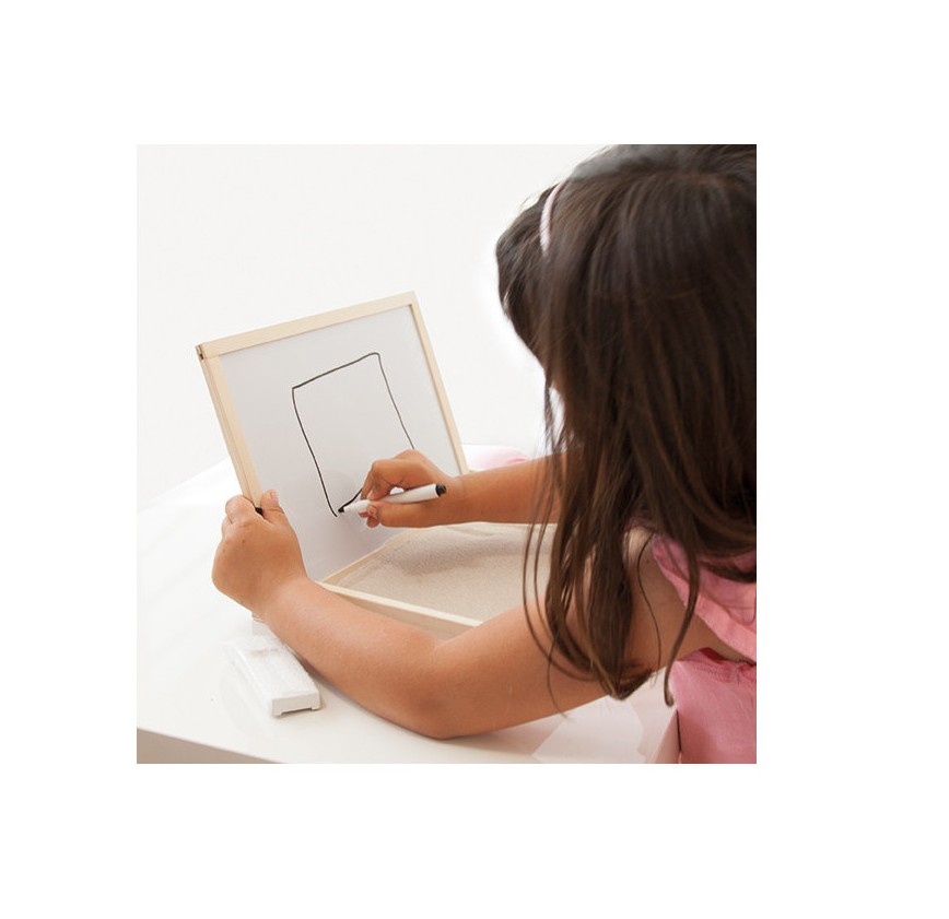 CONTEÚDO: -Tabuleiro de madeira que permite desenvolver a pré-escrita.