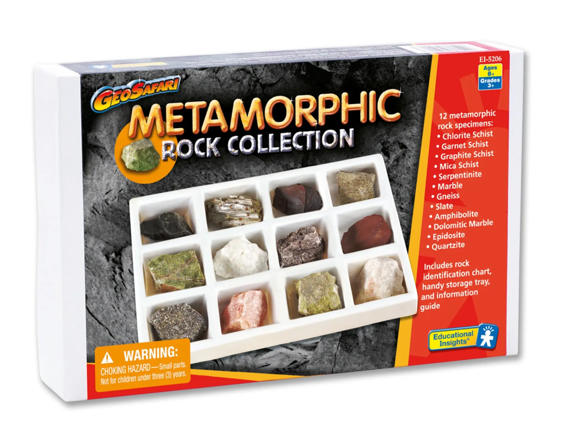 Inclui tabela de identificação de rochas, bandeja de armazenamento prática e guia de informações.