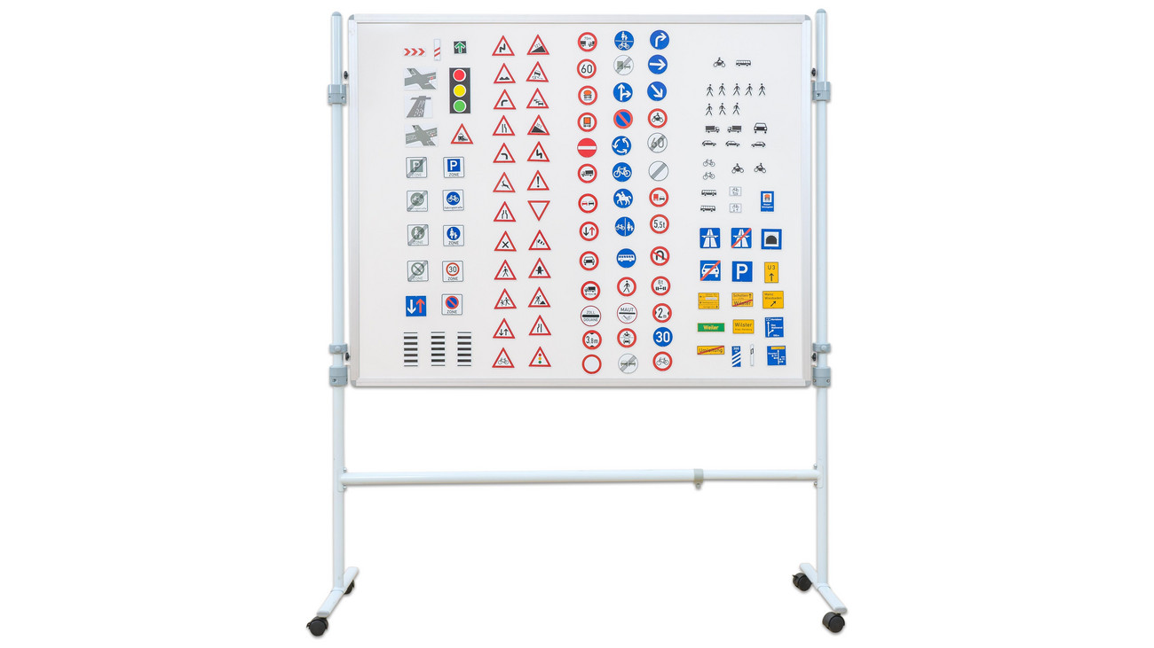 Como o conjunto de placas de trânsito possui uma película magnética na parte de trás, as placas ficam particularmente firmes.