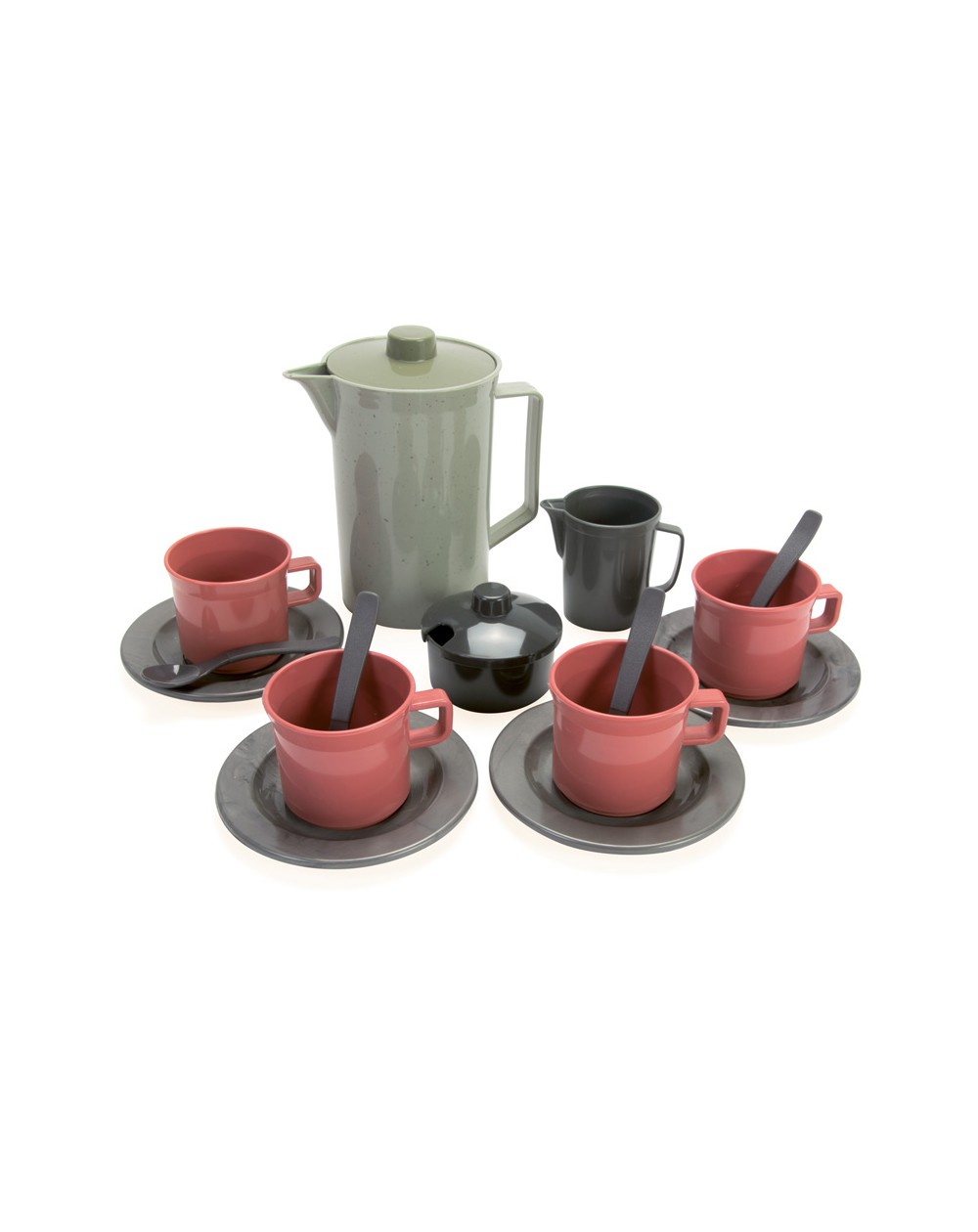 Conjunto de café para 4 pessoas, com 17 peças. Fabricado em plástico 100% reciclado. As cores podem variar.