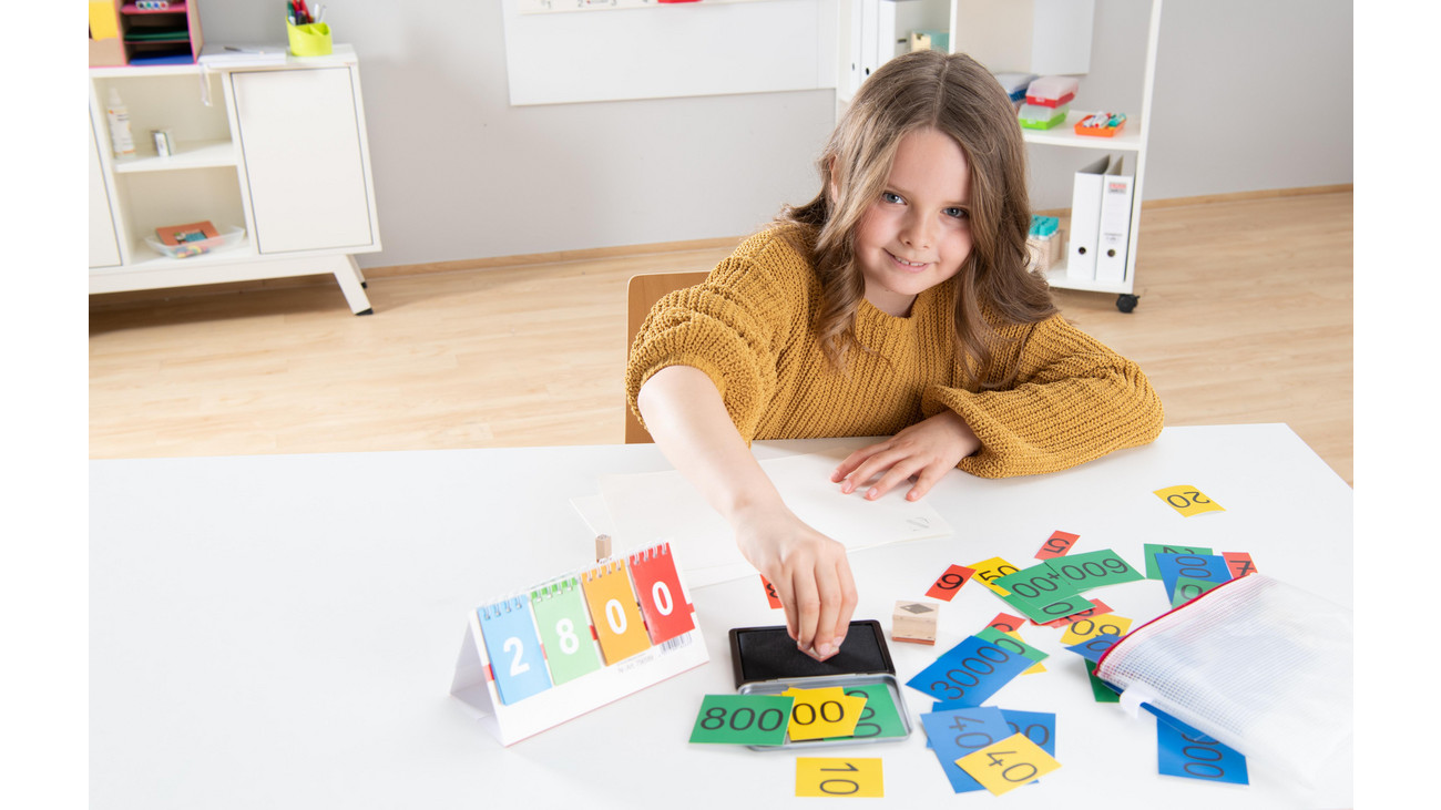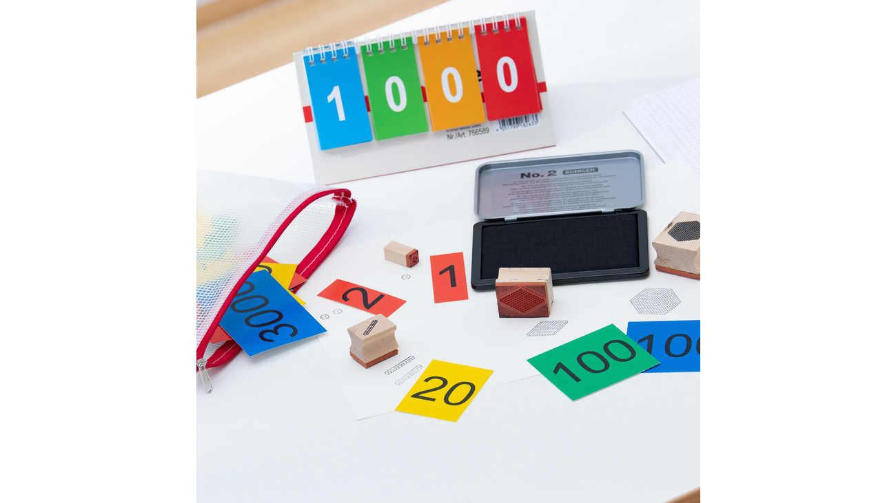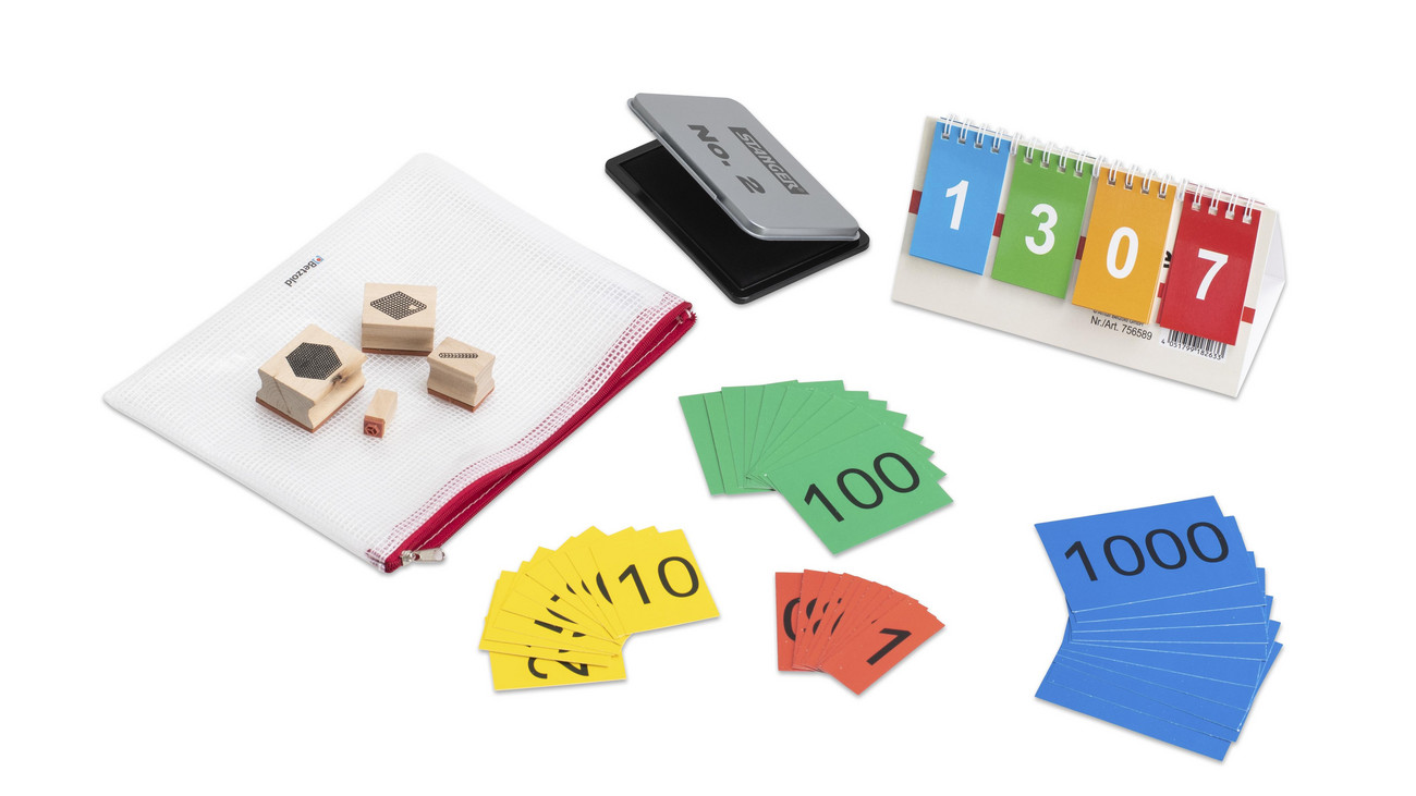 Determinar os valores muitas vezes não é tão fácil para os alunos. Este conjunto foi especialmente elaborado para aulas de matemática descritiva. Com 40 cartões de prioridade, carimbos de base das dezenas e cartões de virada particularmente claros, o mundo das dezenas, centenas e milhares torna-se fácil de entender. Inclui uma prática bolsa com zíper feita de plástico transparente.