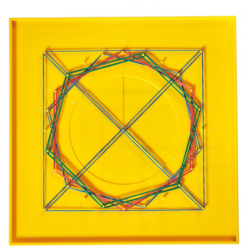 Este Geoboard pode ser usado em ambos os lados com um arranjo quadrado de um lado e um arranjo circular no outro.