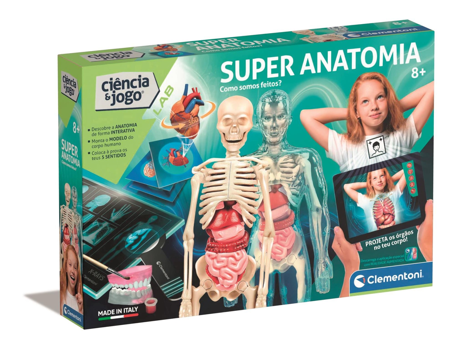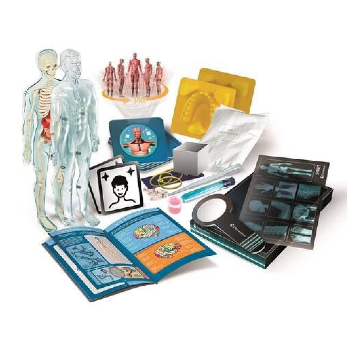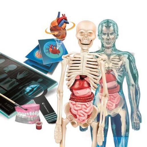 Esqueleto e órgãos para montar, arcadas dentárias para reconstruir e muitas atividades para descobrir os 5 sentidos.