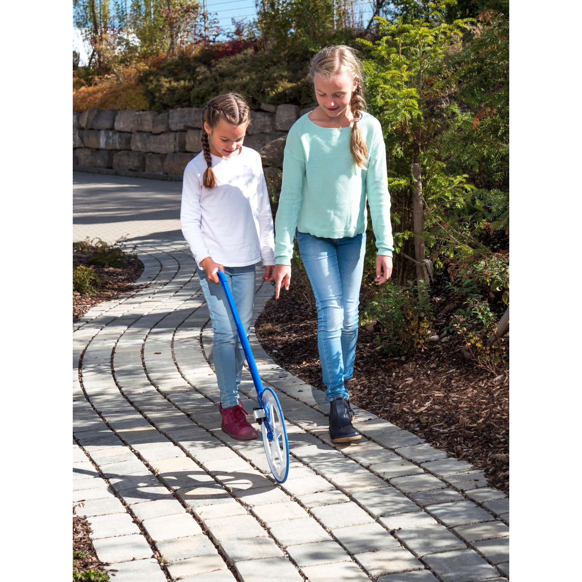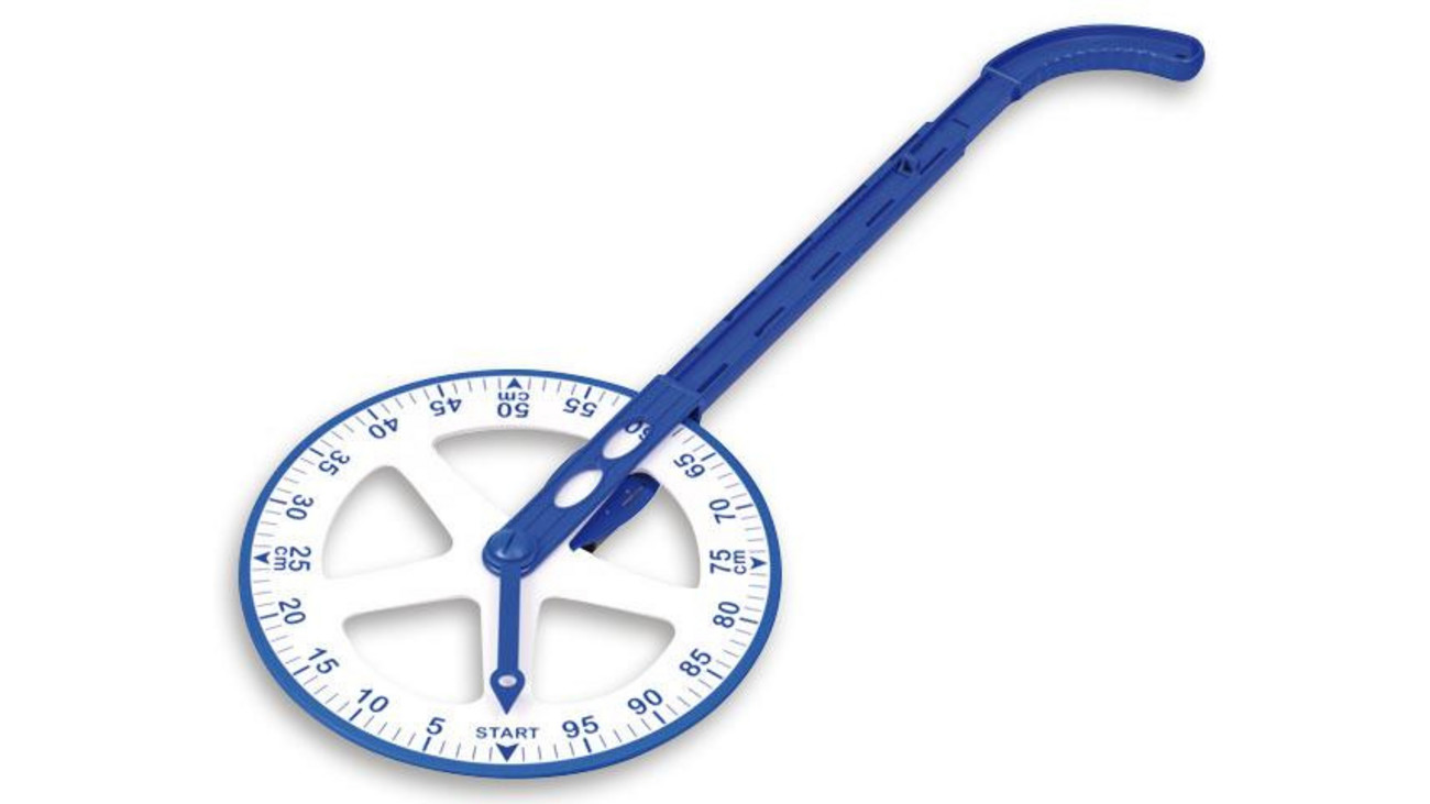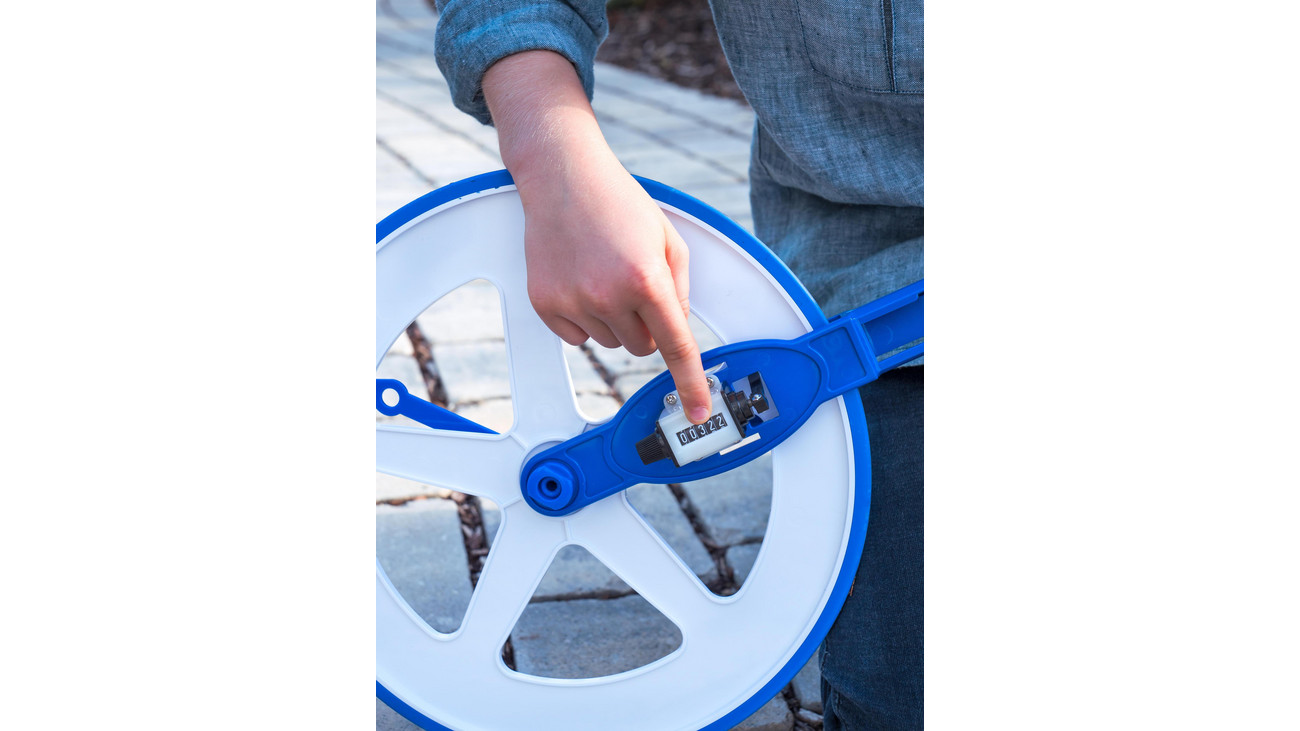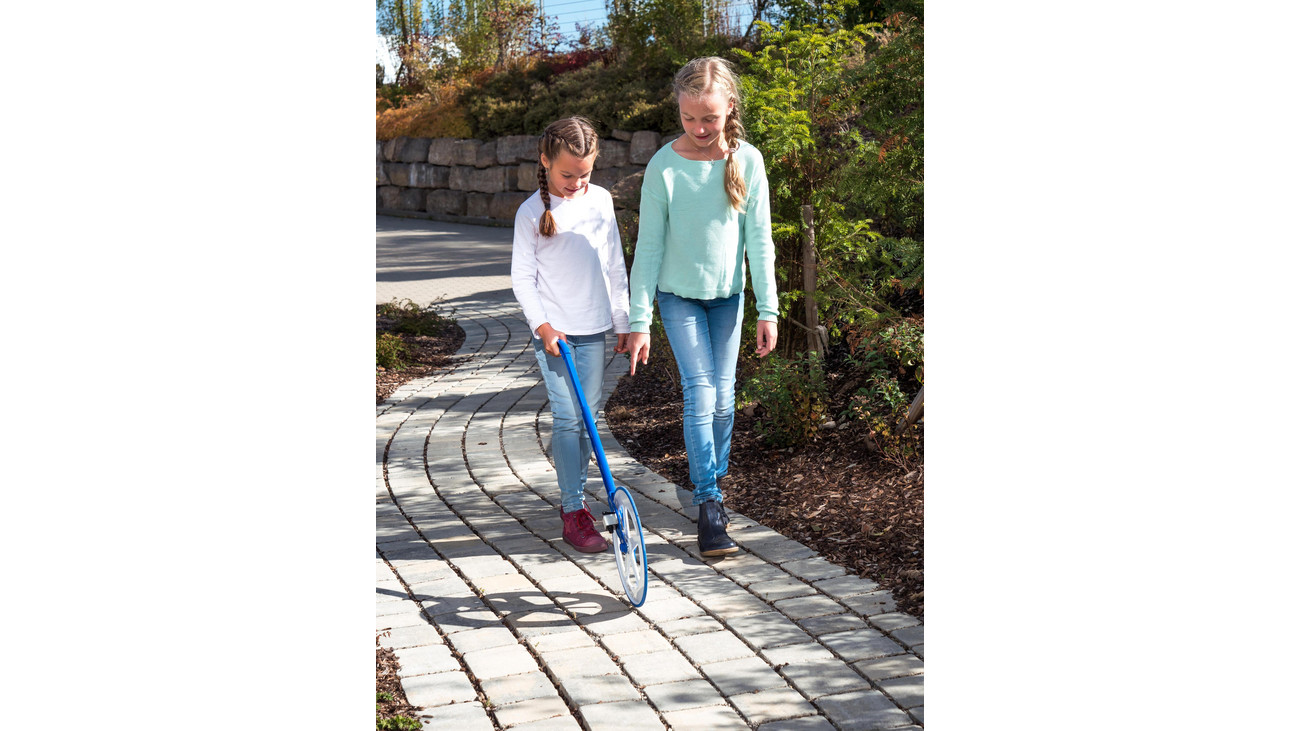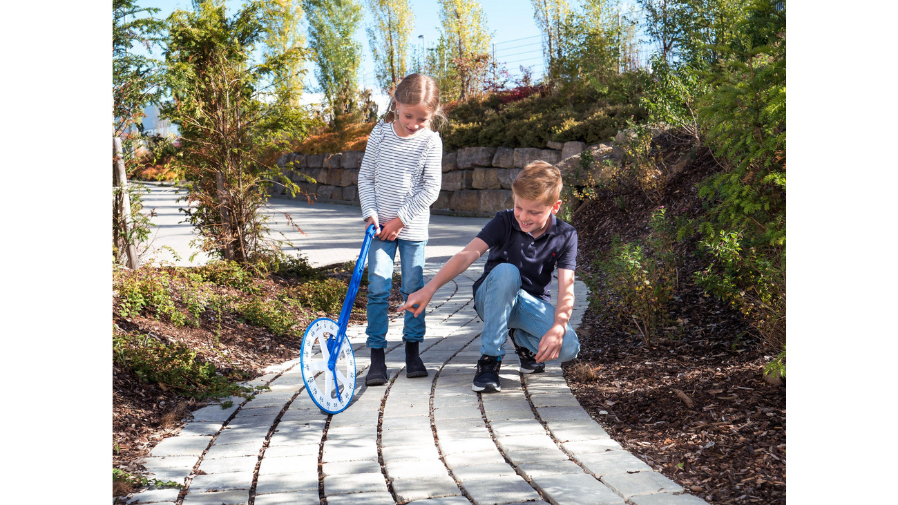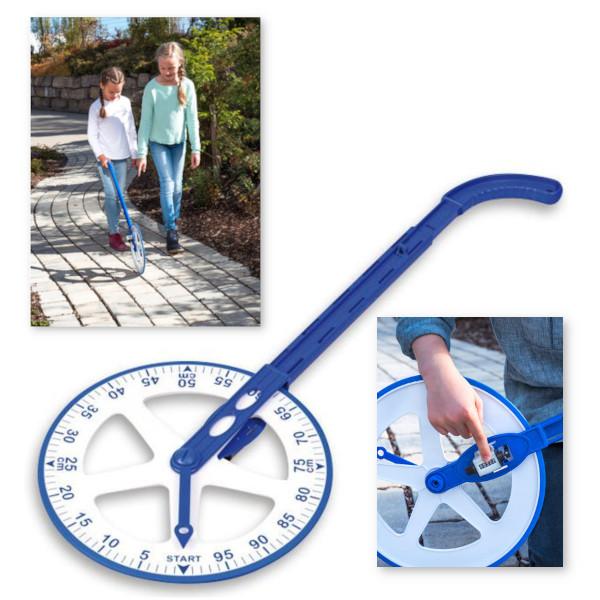 Com este medidor de rolo escolar, as crianças medem distâncias médias e longas de até 99.999 metros.