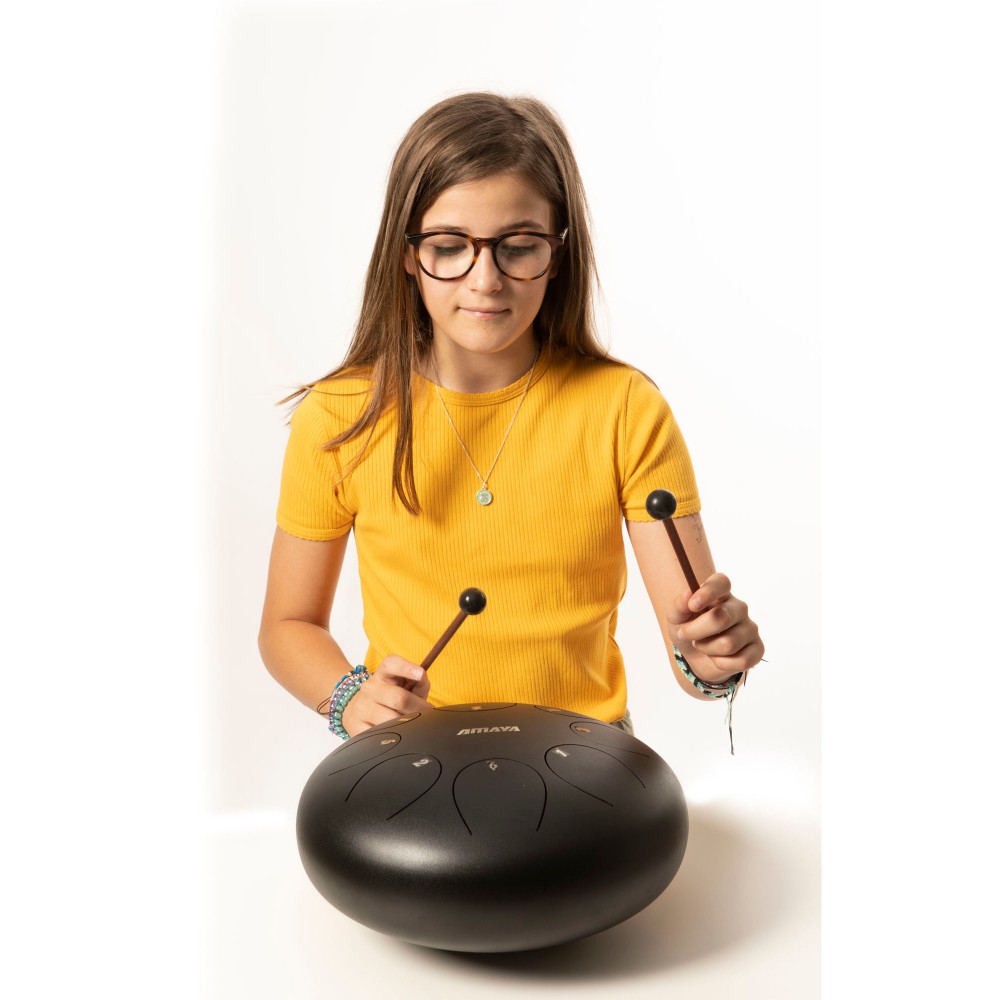 O Tongue Drum é um instrumento de percussão da família dos idiófonos (instrumentos que geram sons através da vibração do próprio material, sem a necessidade de cordas, membranas ou ressonadores externos).