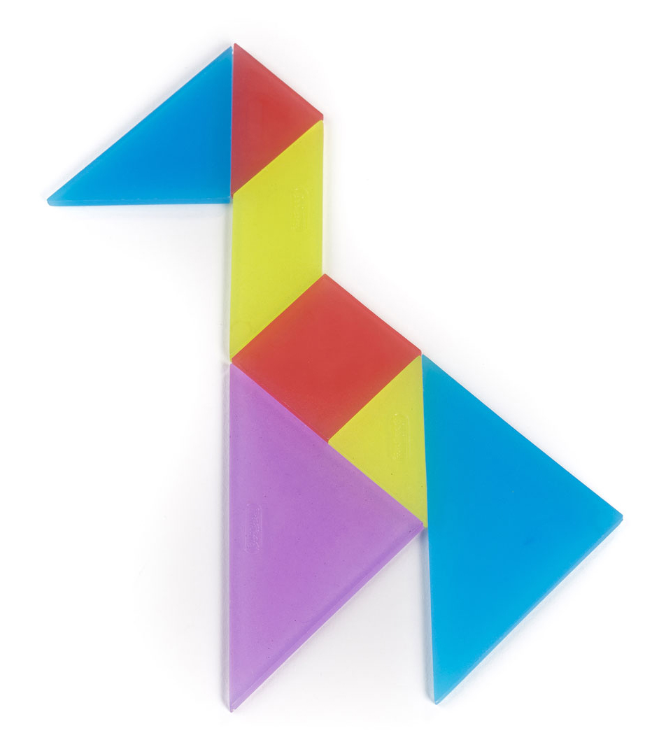 Jogo que permite a criação de formas e figuras a partir de sete peças básicas.