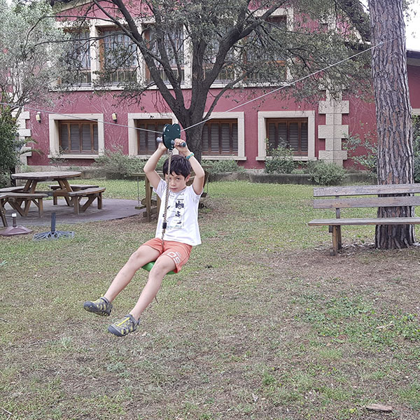 Uma tirolesa no jardim? Os pequeninos poderão desfrutar do ar livre e da velocidade da tirolesa com este set. Esta tirolesa tem um cabo de até 30m feito de ferro galvanizado e pintado de verde escuro. Nas laterais, tem uma pega para a segurar, revestida com um material macio e antideslizante. Além disso, pode ser usada de duas maneiras, agarrando-se nas pegas laterais ou usando o assento de plástico que está incluído. Idade: A partir de 3 anos.