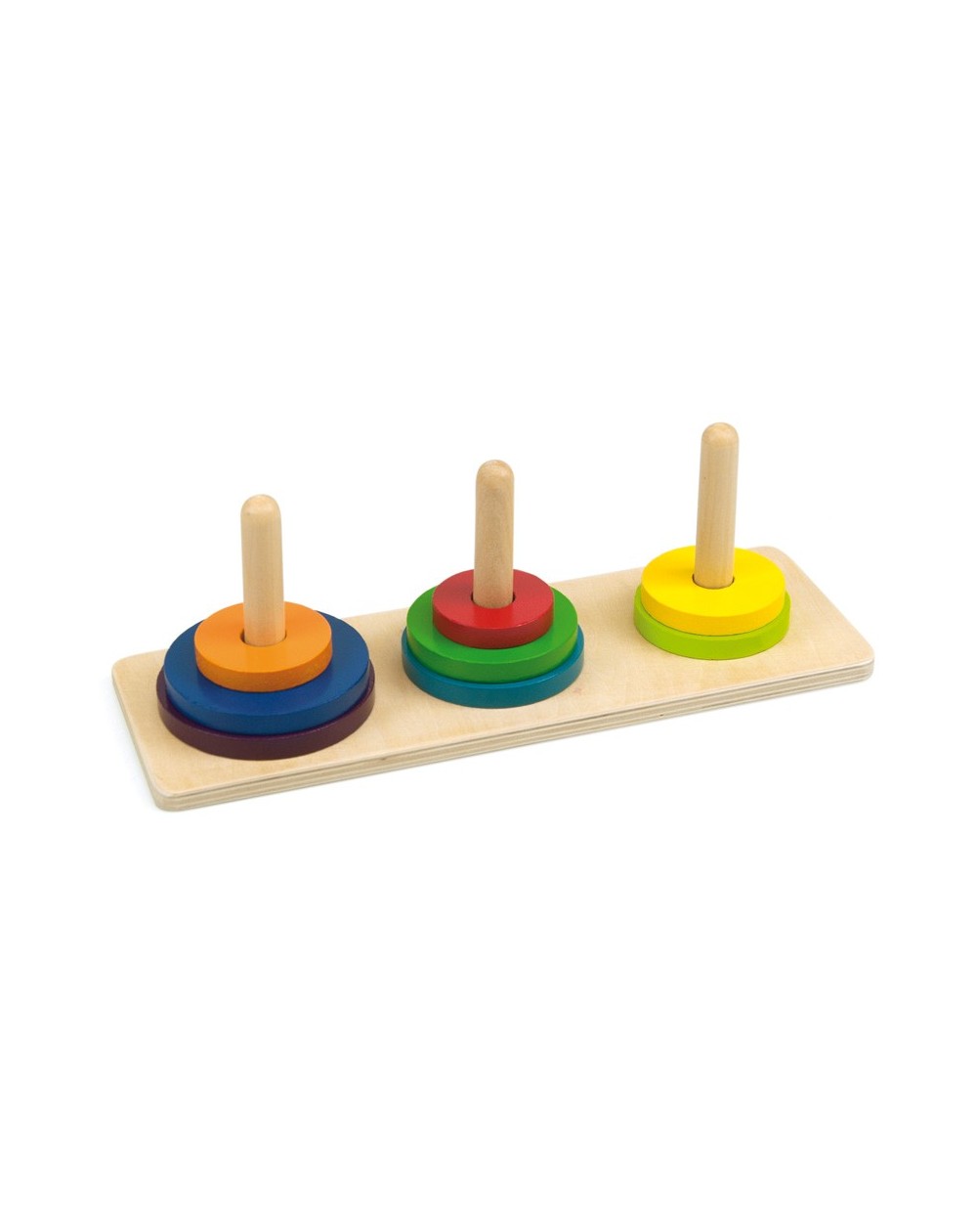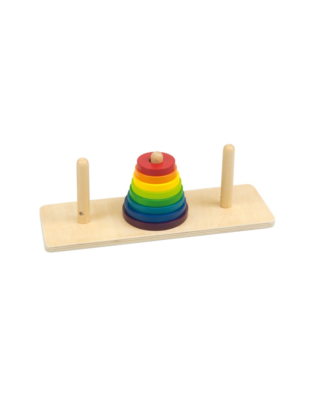 O objetivo é mover toda a pilha de discos para outro pino ou haste, seguindo algumas regras simples.