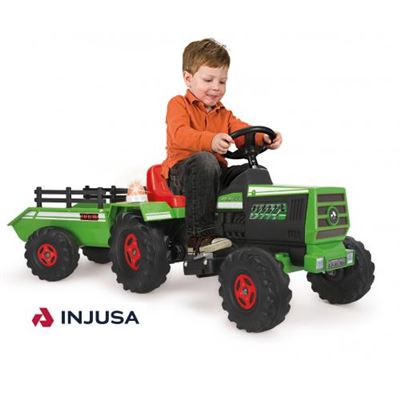 Trator básico de 6V. Injusta, os pequenos vão se divertir com seu trator com um reboque colorido brilhante e divertido, faz passeios ao ar livre.